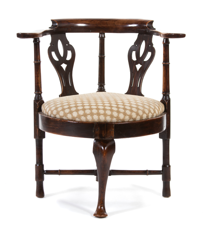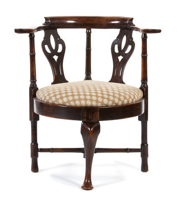 A George III Provincial Elmwood and Mahogany Corner Armchair