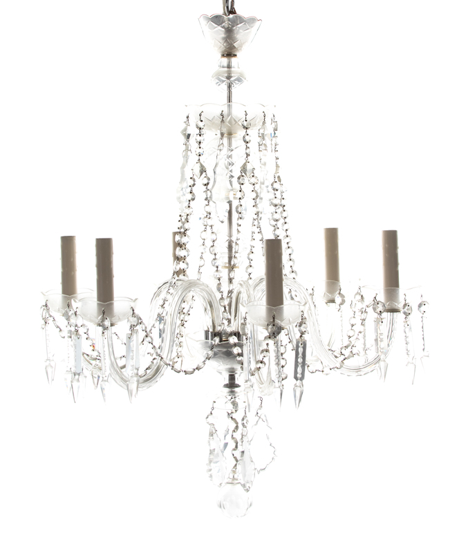 A George III Style Cut and Molded Glass Six-Light Chandelier