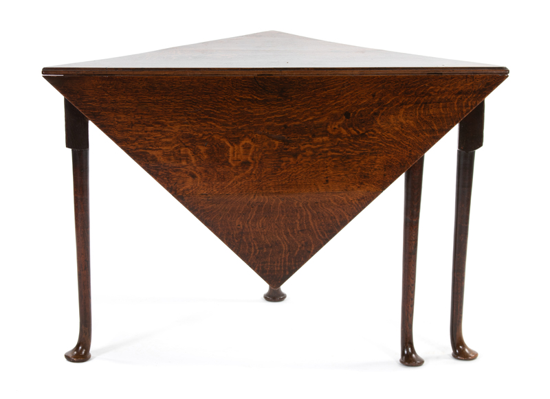 A George III Provincial Style Oak Triangular Dropleaf Table
