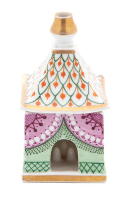 Modeled in the form of a pavillion, the interior with three prunts.
