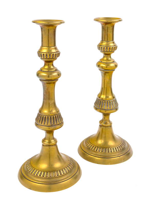 Each knopped stem with fluted bands, raised on a conforming circular foot.
