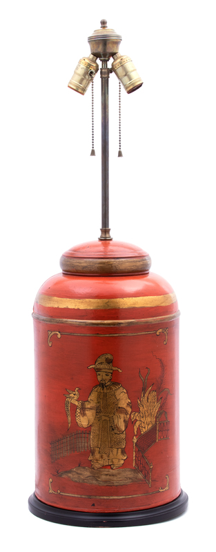A Victorian Style Tole Canister Mounted as Lamp