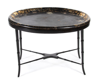 A Victorian Papier-Mache Oval Tray on Stand