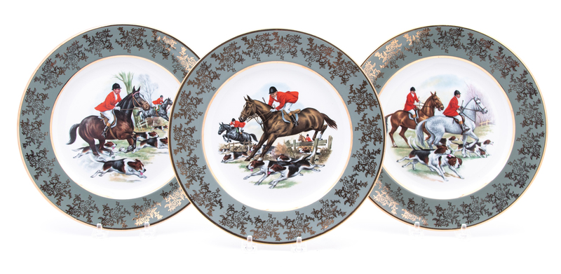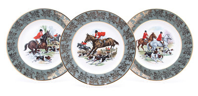 Set of Six Porcelain Equestrian Plates