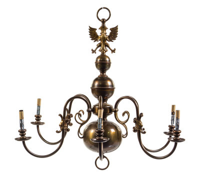 A Flemish Baroque Style Brass Six-Light Chandelier