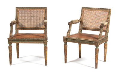 A Pair of Italian Neoclassical Style Green-Painted Armchairs