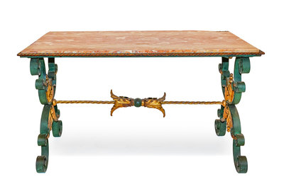Two Iron and Marble Tables in the Style of Gilbert Poillerat