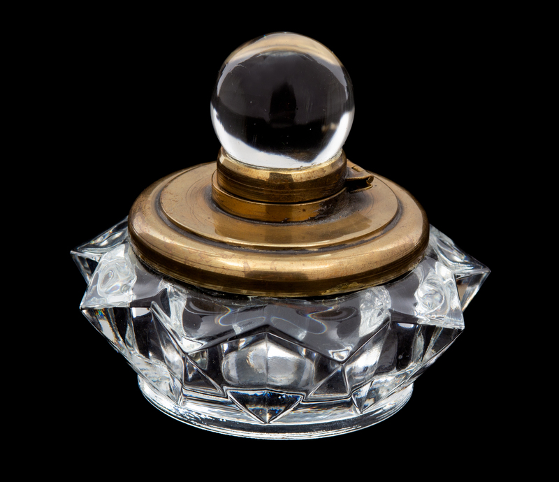 A Brass Mounted Glass Inkwell