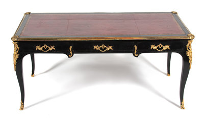 A Louis XV Style Gilt-Bronze-Mounted Ebonized Bureau Plat