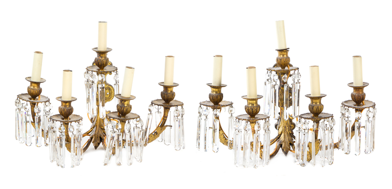 A Pair of French Gilt Bronze Five-Light Wall Lights
