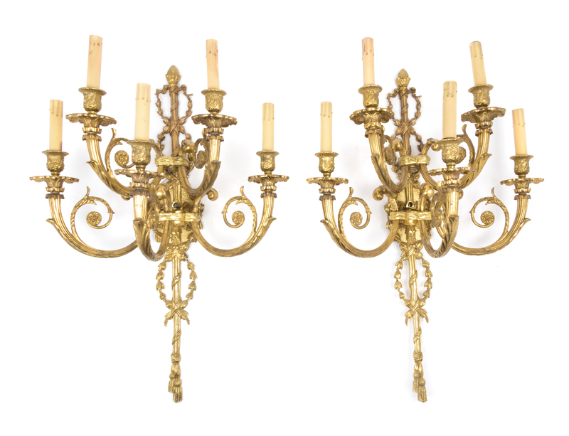 A Pair of Louis XVI Style Gilt-Bronze Five-Light Wall Lights