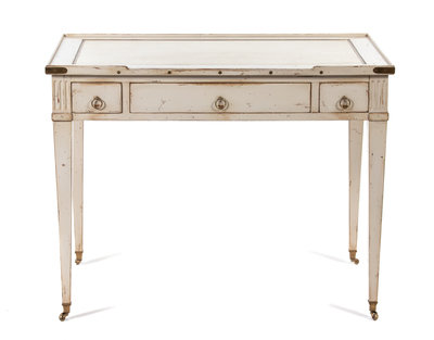 A Louis XVI Style Brass-Mounted and White-Painted Writing Table