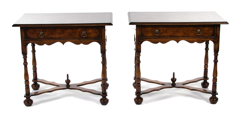 A Pair of William & Mary Style Oyster-Veneered Walnut Side Tables