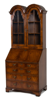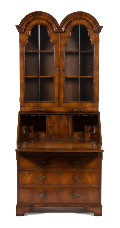A William & Mary Style Walnut Double Dome Secretary Bookcase