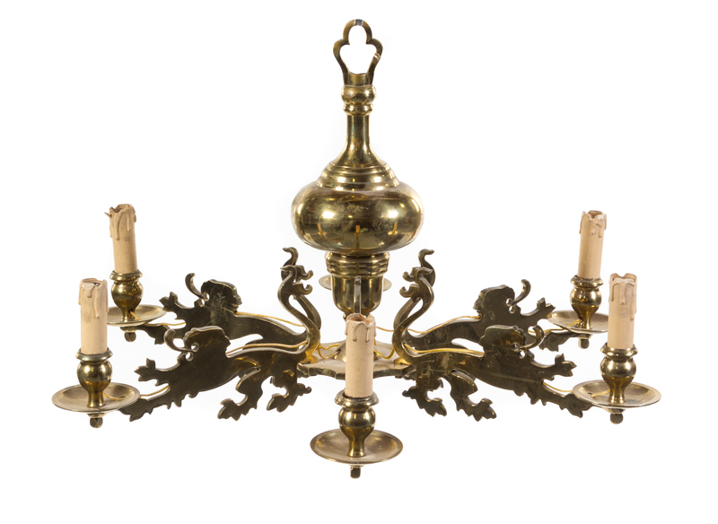 A Flemish Brass Six-Light Chandelier