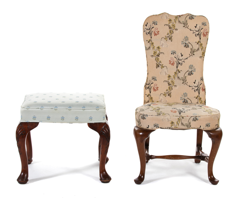 A George II Style Oak Stool and a Queen Anne Style Upholstered Side Chair