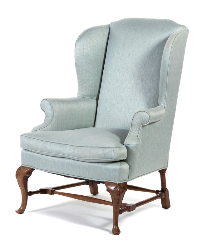 Two Queen Anne Style Wing Armchairs