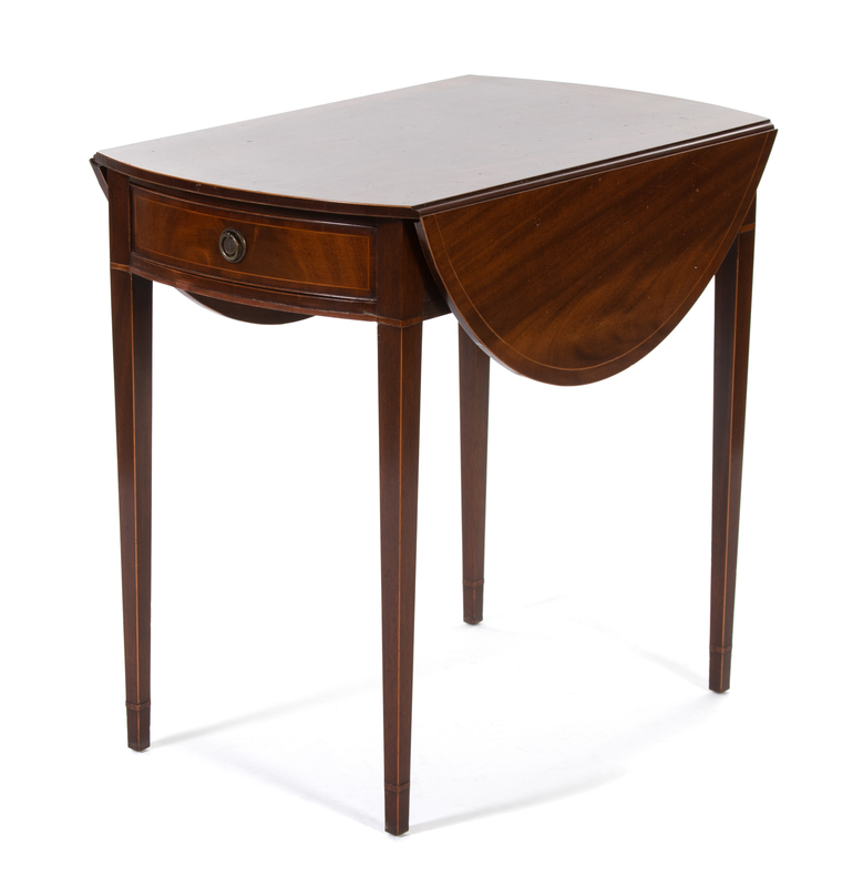The rectangular top with D-shaped drop leaves over a frieze drawer at either end, raised on tapering square legs.