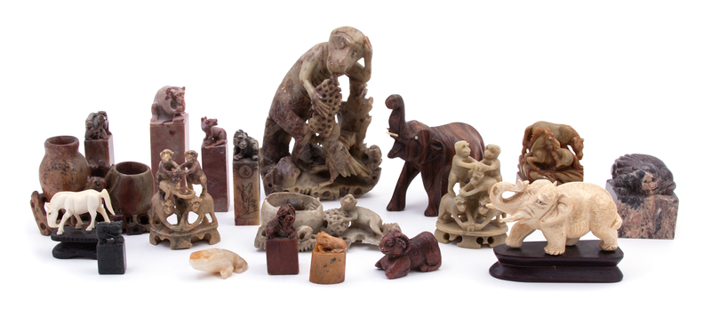 A Group of Chinese Soapstone Seals and Carvings