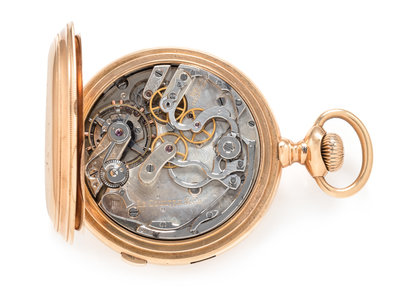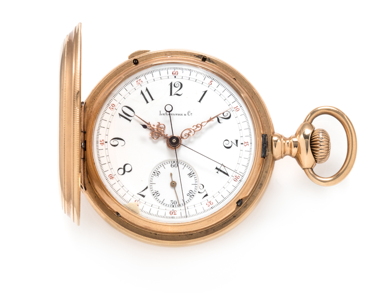 Le Coultre, 18K Yellow Gold Hunter Case Split Second Chronograph Pocket Watch