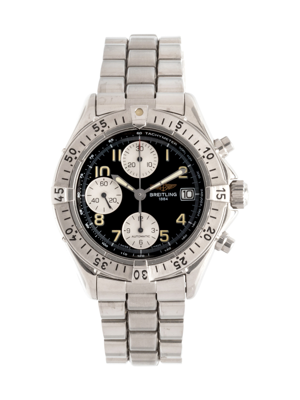 41.00 mm case diameter, black dial with outer tachymeter ring signed BREITLING, luminous Arabic numerals,