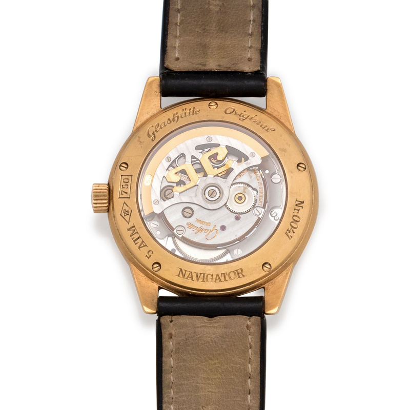 Case back stamp: Glashutte Original Nr.0047 NAVIGATOR 5 ATM 750.