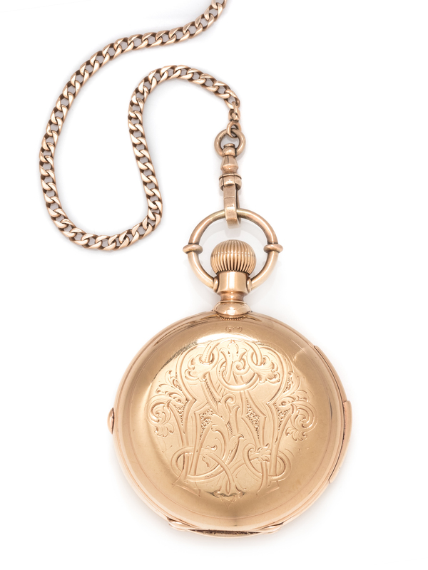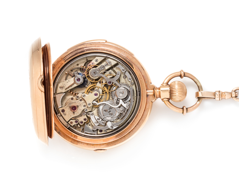 Patek Philippe, 18K Yellow Gold Hunter Case Chronograph Minute Repeater Pocket Watch, Circa 1886