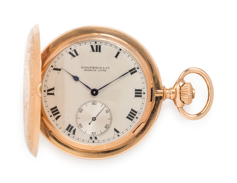 Schupbach & Cie., Hankow Chine, 18K Pink Gold Hunter Case Pocket Watch