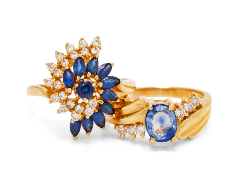 A Collection of 14 Karat Yellow Gold, Sapphire and Diamond Rings,