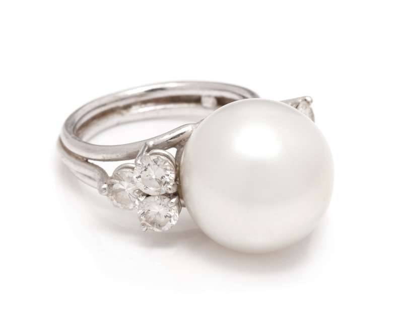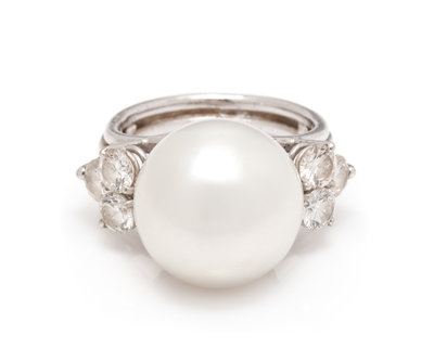 An 18 Karat White Gold, Cultured South Sea Pearl and Diamond Ring,