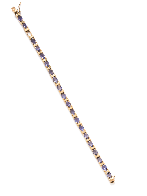 A 14 Karat Yellow Gold and Tanzanite Bracelet,