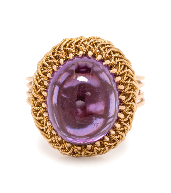A Yellow Gold and Glass Ring,