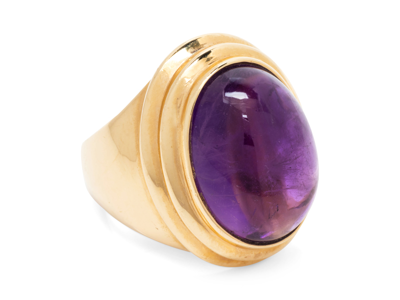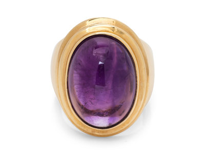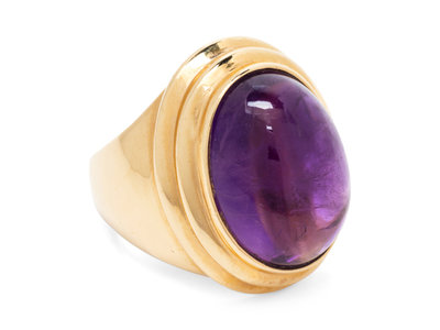 A 14 Karat Yellow Gold and Amethyst Ring,