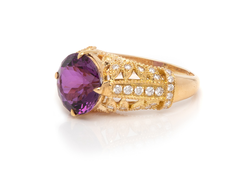 An 18 Karat Yellow Gold, Amethyst and Diamond Ring,