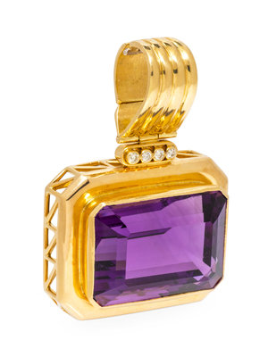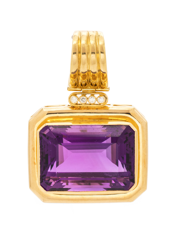 An 18 Karat Yellow Gold, Amethyst and Diamond Pendant,
