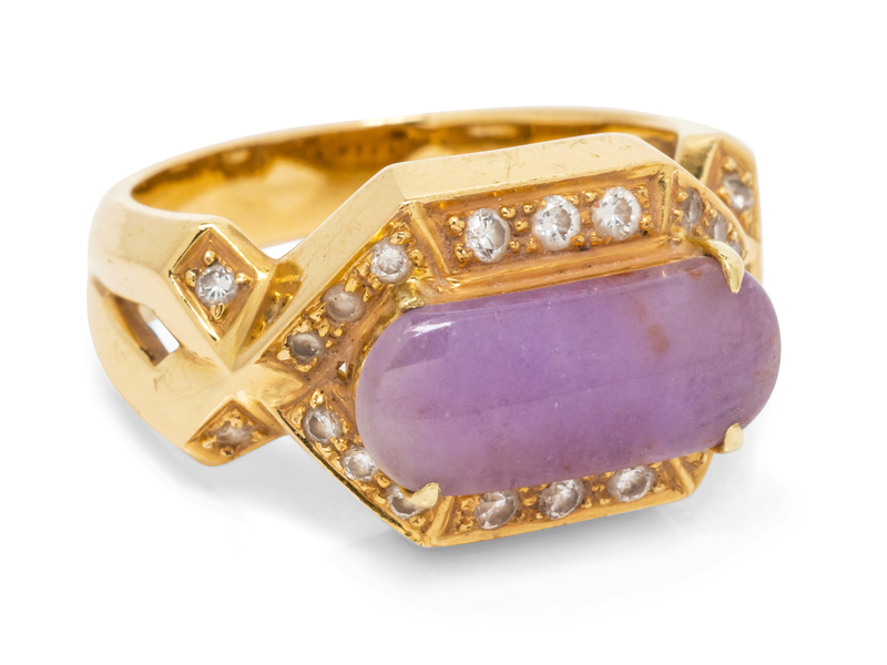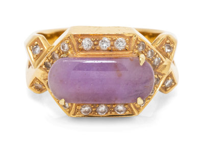 An 18 Karat Yellow Gold, Purple Jade and Diamond Ring,