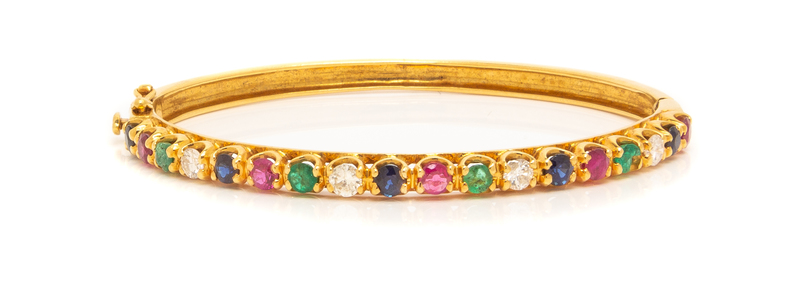 An 18 Karat Yellow Gold, Diamond and Multigem Bangle Bracelet,