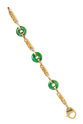 containing three mottled green jade bi measuring approximately 16.00 mm in diameter.
