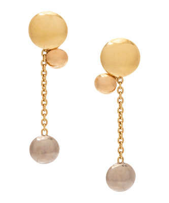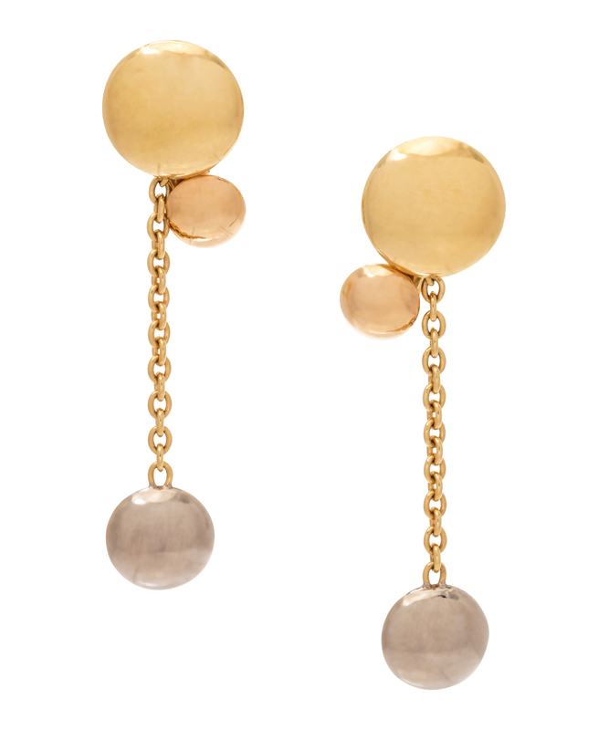 consisting of yellow and rose gold discs suspending white gold discs, posts with clip backs.