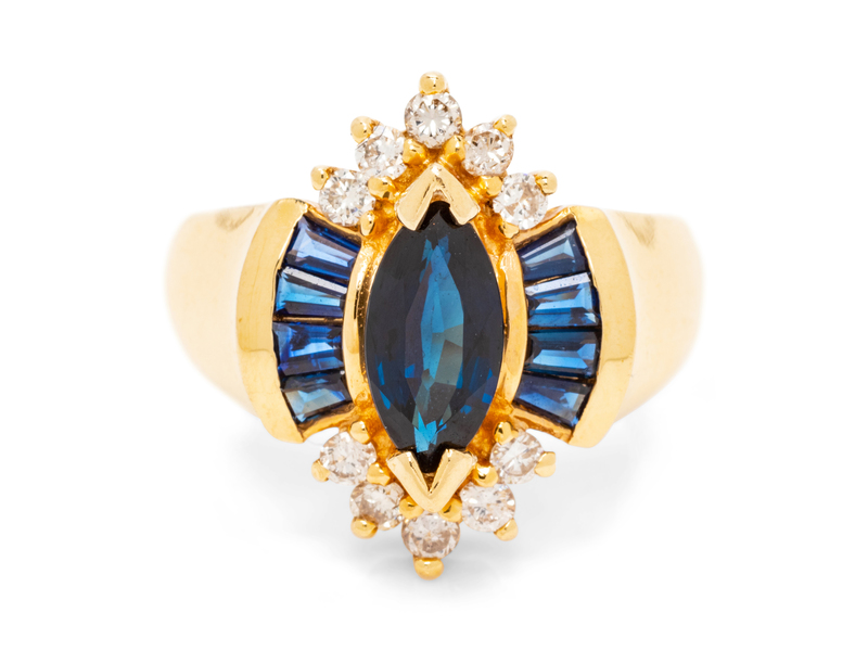 A 14 Karat Yellow Gold, Sapphire and Diamond Ring,