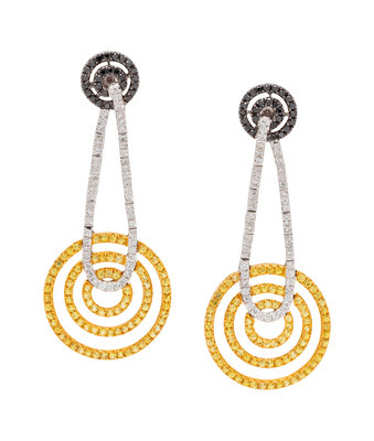 A Pair of Bicolor Gold, Diamond, Black Diamond and Yellow Sapphire Earrings,