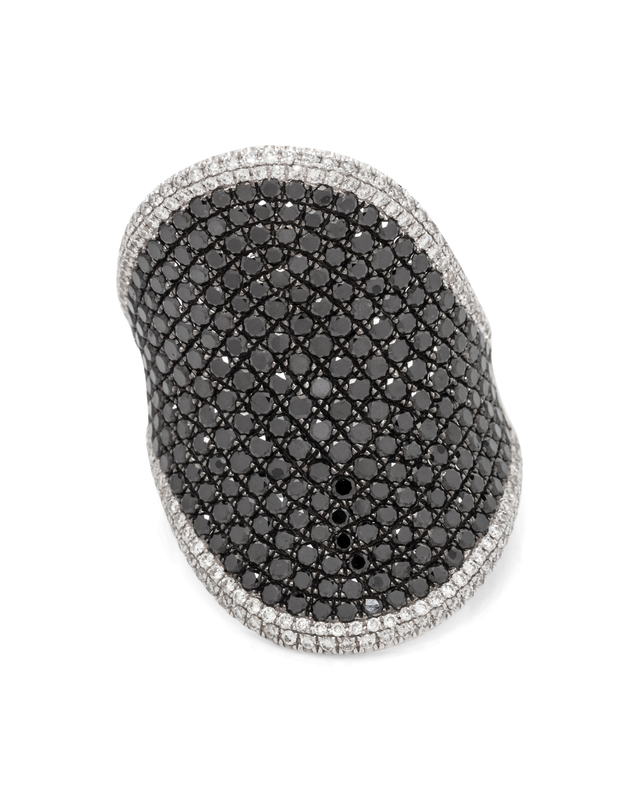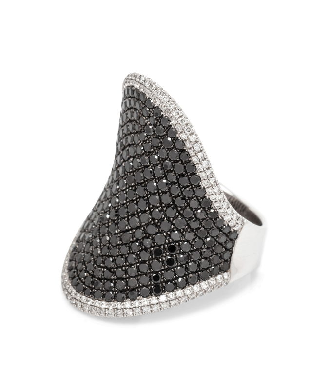 An 18 Karat White Gold, Black Diamond and Diamond Ring,