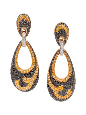 A Pair of 18 Karat Gold, Black Diamond, Sapphire and Diamond Earrings,