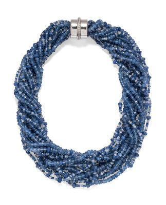 consisting of 13 strands of faceted sapphire beads suspended by a white gold and diamond clasp.