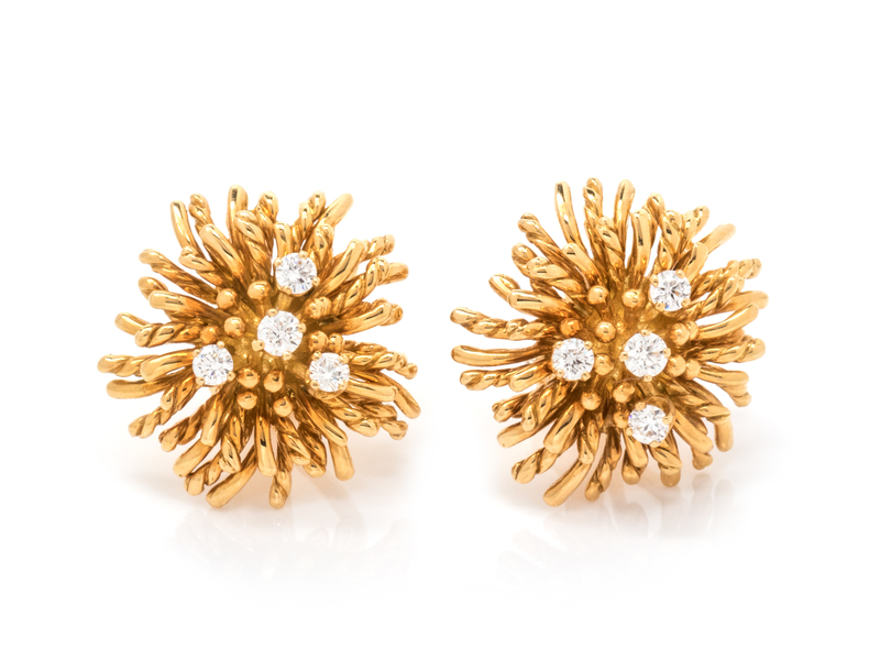 A Pair of 18 Karat Yellow Gold and Diamond 'Anemone' Earclips, Tiffany & Co.,