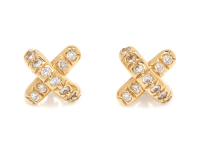 A Pair of 18 Karat Yellow Gold and Diamond 'X' Earrings, Tiffany & Co.,
