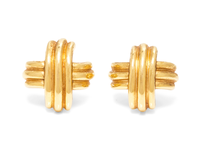 A Pair of 18 Karat Yellow Gold Criss-Cross Earclips, Tiffany & Co.,