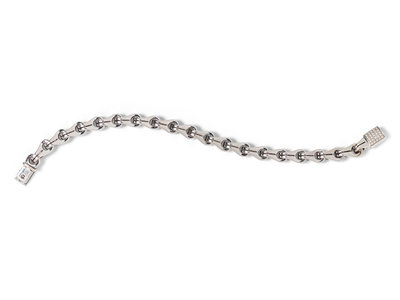 consisting of a fancy link chain measuring approximately 8.00 mm wide, the clasp containing 30 round brilliant cut diamonds weighing approximately 0.15 carat total.