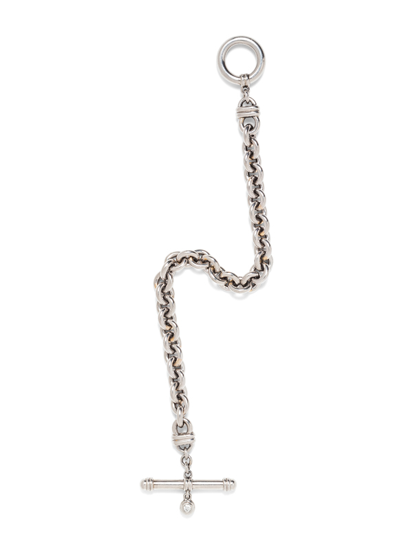 consisting of a cable link chain measuring approximately 7.00 mm wide, the clasp containing two round brilliant cut diamonds.