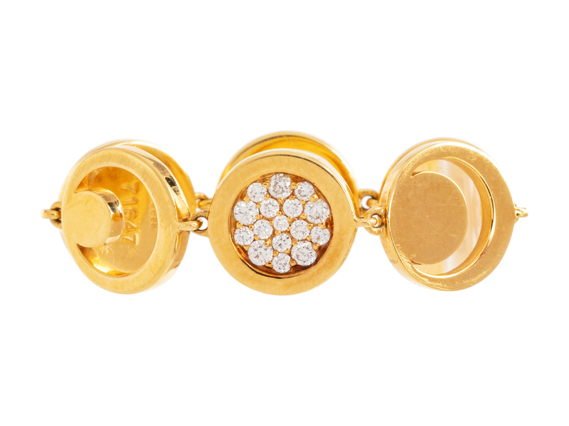 consisting of six round links, one link containing 16 round brilliant cut diamonds weighing approximately 0.08 carat total.